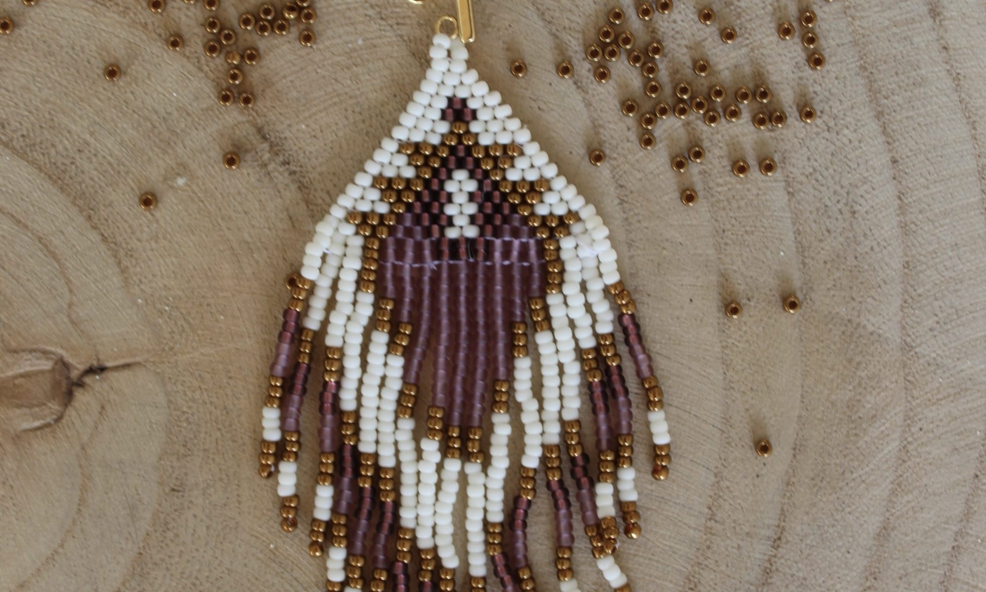pendientes india color rosa, blanco y cobre, delicas Miyuki, enganche color oro
