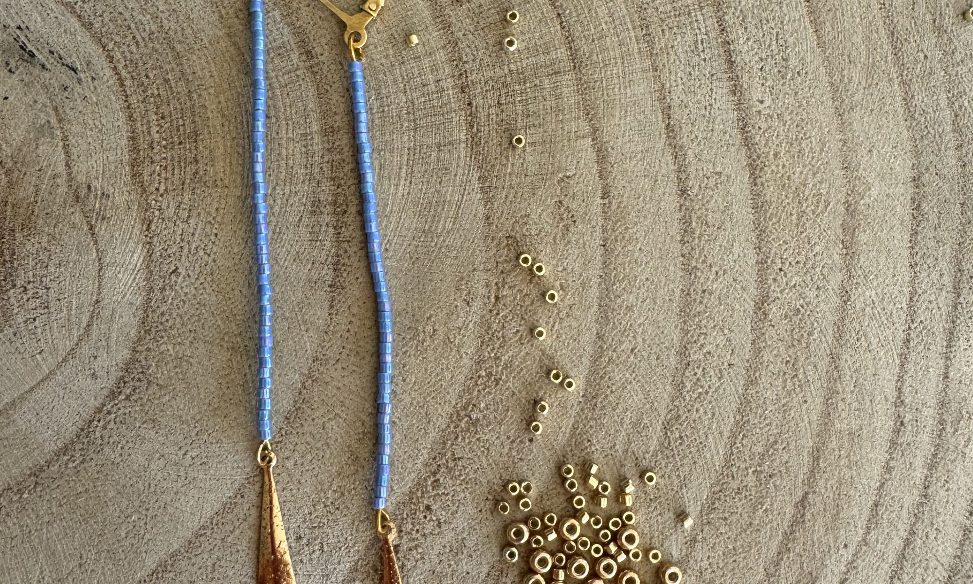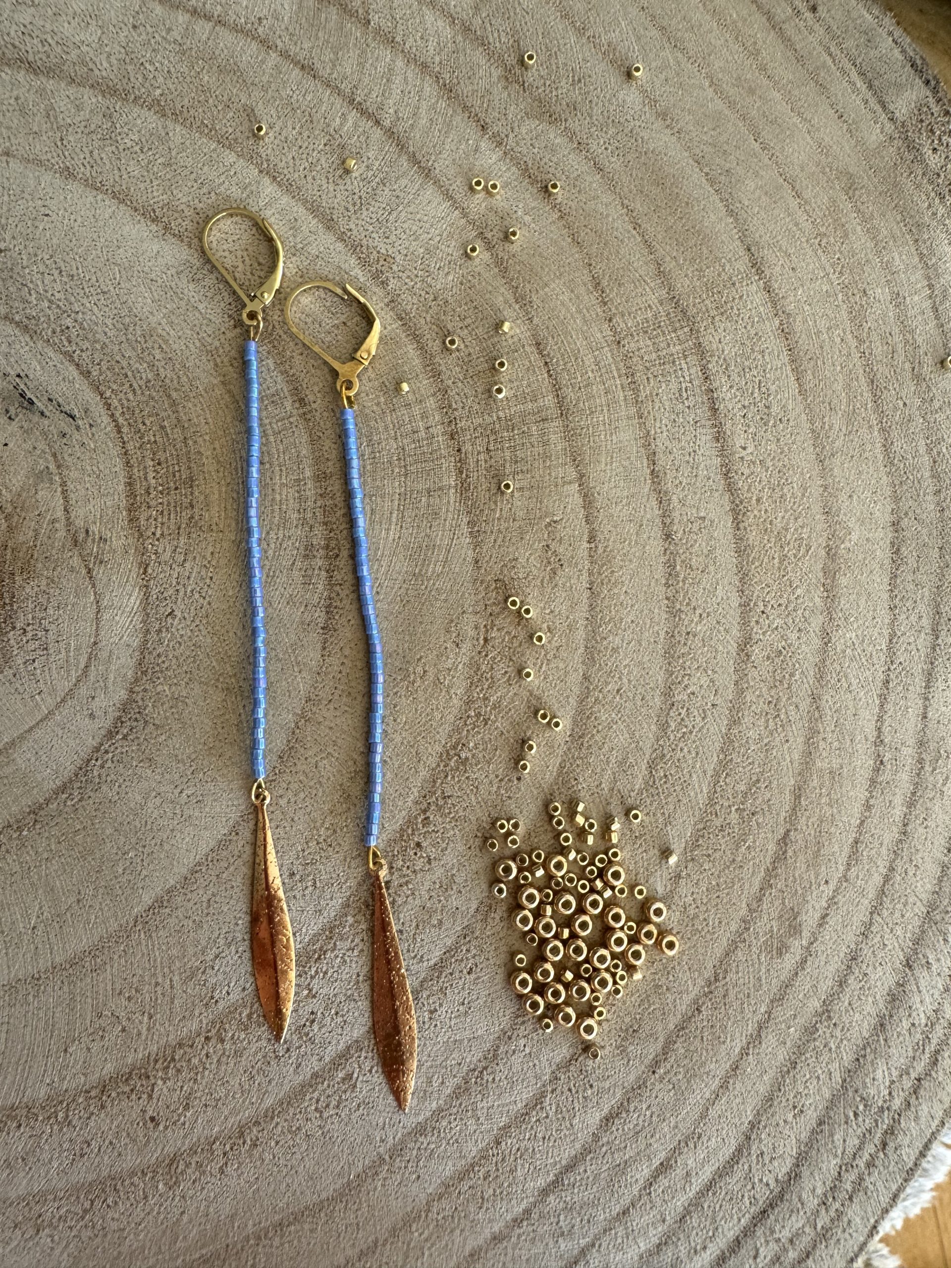 pendientes Belén azul, delicas Miyuki con enganche color oro